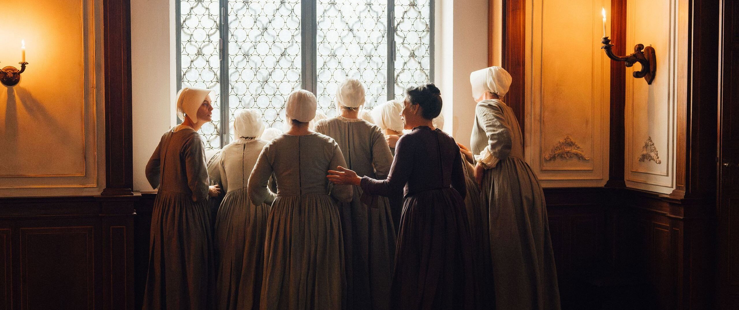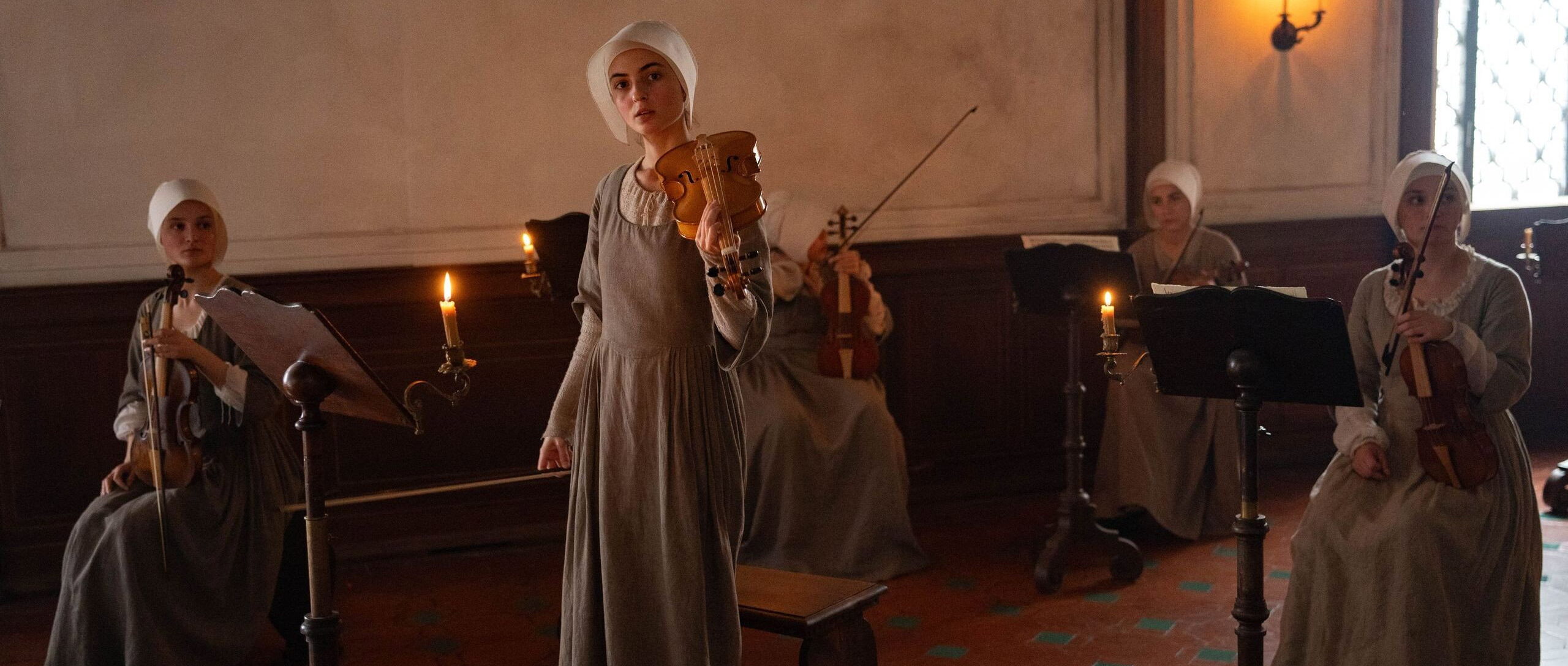 A crowd of awed spectators gathered in a church stare and listen. The sound that reaches their ears inspires a range of high emotions. Some cry, some stand with their mouths agape, and many others simply remain still in deep, focused contemplation. No matter how much the audience stares above, however, they can never see the source of the angelic tones. The feelings of ecstasy must be sourced from their imaginations. The concept of spectatorship – and the comparative powerlessness of those being watched, whether visible or not – is a dynamic established early on in Michieletto’s debut. This group of girls from Ospedale della Pietà are trained from birth under a strict regime to perform their musical arts in the hopes of attracting the attention of wealthy patrons searching for a bride.